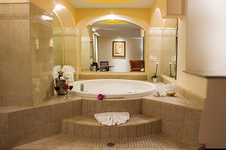 The hot tub and spa bath are the standout features of this suite. The air-conditioned suite has 1 bedroom and 1 bathroom with a bath or a shower and a hairdryer. The suite features a coffee machine, a safe deposit box, heating and a flat-screen TV with satellite channels. The unit has 1 bed.